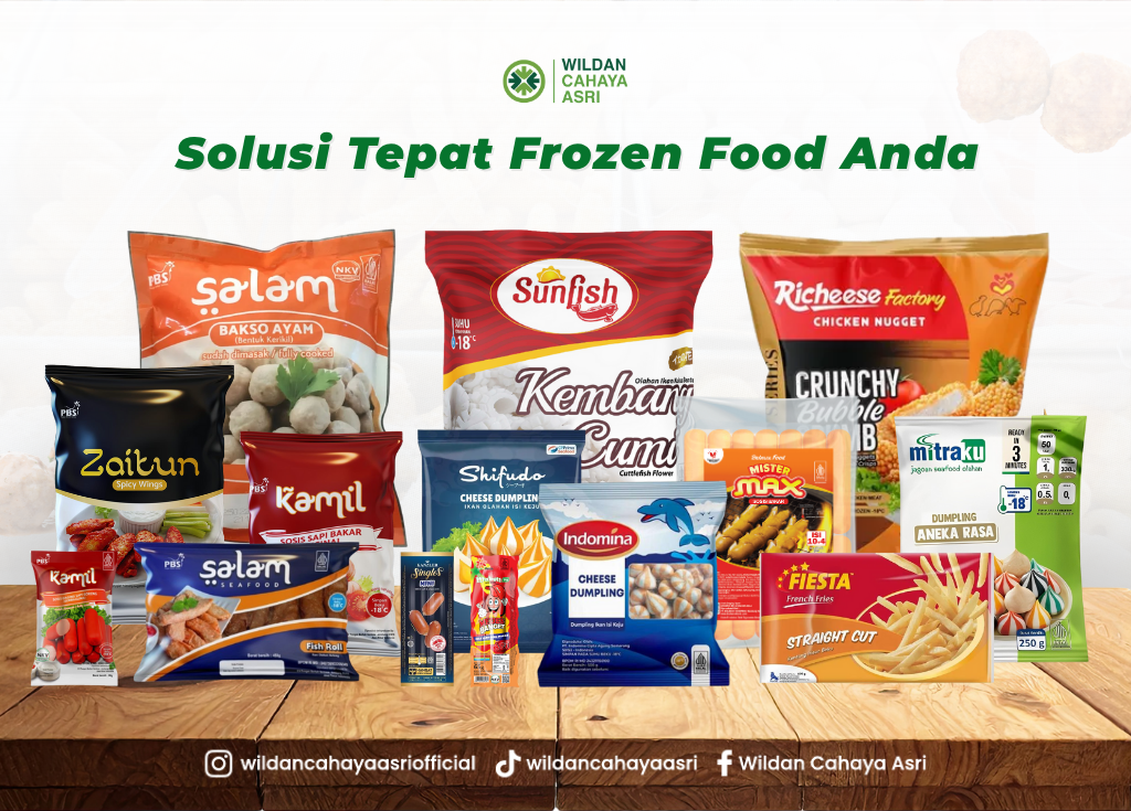 PT. WILDAN CAHAYA ASRI adalah distributor makanan beku terpercaya yang menyediakan berbagai produk berkualitas seperti nugget, sosis, bakso, ayam olahan, dan aneka frozen food lainnya. Produk-produk tersebut dipilih dari mitra produsen terbaik dan diproses menggunakan standar mutu yang tinggi dari PT. WILDAN GROUP dengan sistem distribusi yang efisien dan modern.
