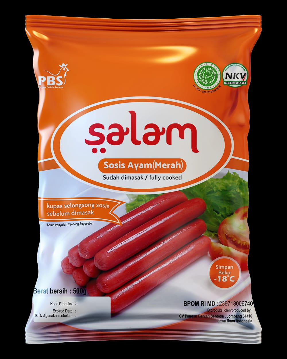 SALAM SOSIS AYAM MERAH 500 GR (PENDEK)